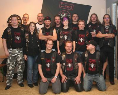 kam. Im Oktober 1993 fing alles an, als sich die 3 Gründungsmitglieder trafen. Sie überlegten, ob sie aus ihrer Leidenschaft zu Motorrädern, und weil sie sowieso immer gemeinsam mit anderen aus dem Bekanntenkreis eine Vielzahl von Motorrad-Treffen anfuhren und gemeinsam Ausfahrten gestalteten, sich nicht zusammenschließen sollten und unter gemeinsamen Namen Treffen und Ausfahrten in Angriff nehmen sollten. Die drei waren sich einig und beschlossen , einen Namen für den Club zu suchen. Der Name war innerhalb kürzester Zeit gefunden. Damals fuhren wir unter dem Namen "MSF Aßmannshardt" mit eigenem Emblem. Es wurde ein Clubheim gesucht. Nach langen Verhandlungen bekamen wir ein Clubheim, in Form eines Bauwagens, den wir in einem Fahrsilo abstellen durften. In der Zwischenzeit waren wir auf 20 Mitglieder angewachsen. 1995 war ein schlechtes Jahr für uns. Im August verstarb eines unserer Mitglieder durch einen Motorradunfall. Danach schien der Zusammenhalt besser denn je, aber ab Oktober trafen wir uns immer weniger, und der Club schien sich aufzulösen. Im Januar 1996 gaben wir das Clubheim wegen mangelndem Interesse auf. Im Oktober 1996 riefen wir alle alten Mitglieder des Clubs, die noch Interesse daran hatten, zusammen und besprachen, wie es weiter gehen soll. Um komplett neu anzufangen wurde ein neuer Name und ein neues Color gesucht. Hieraus entwickelte sich der Name "MC Creeps". Des weiteren ließen wir uns im Vereinregister eintragen. Die Suche nach einem Platz und einem Clubheim, welche sich abermals sehr schwierig gestaltete, ging von vorne los. Im Februar 1999 bekamen wir einen Platz beim Sportplatz in Aßmannshardt, auf dem wir wiederum einen Bauwagen aufstellten. Am 24. Februar 2000 haben wir nun endlich von der Gemeinde einen Raum als Clubheim bekommen, in dem wir uns gut eingerichtet hatten. Dieser Raum wurde aber bald zu klein und asserdem standen durch das generelle Rauch-Verbot in Gemeinderäumen mehr Leute vor dem Raum als an der Theke. Darum machten wir uns im Herbst 2007 wieder auf die Suche nach einer neuen Bleibe, die wir in einer Industriehalle auf dem ehemaligen Ziegelei-Gelände fanden. Diese mieteten wir und bauten sie bis zum Januar 2008 komplett in Eigenleistung zu einem gemütlichen Clubheim mit allem Comfort um. Im November 2022 mussten wir das große Clubheim aus finanziellen Gründen schweren Herzens aufgeben :-( |