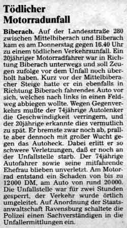 Ausschnitt aus der "Schwäbischen Zeitung"